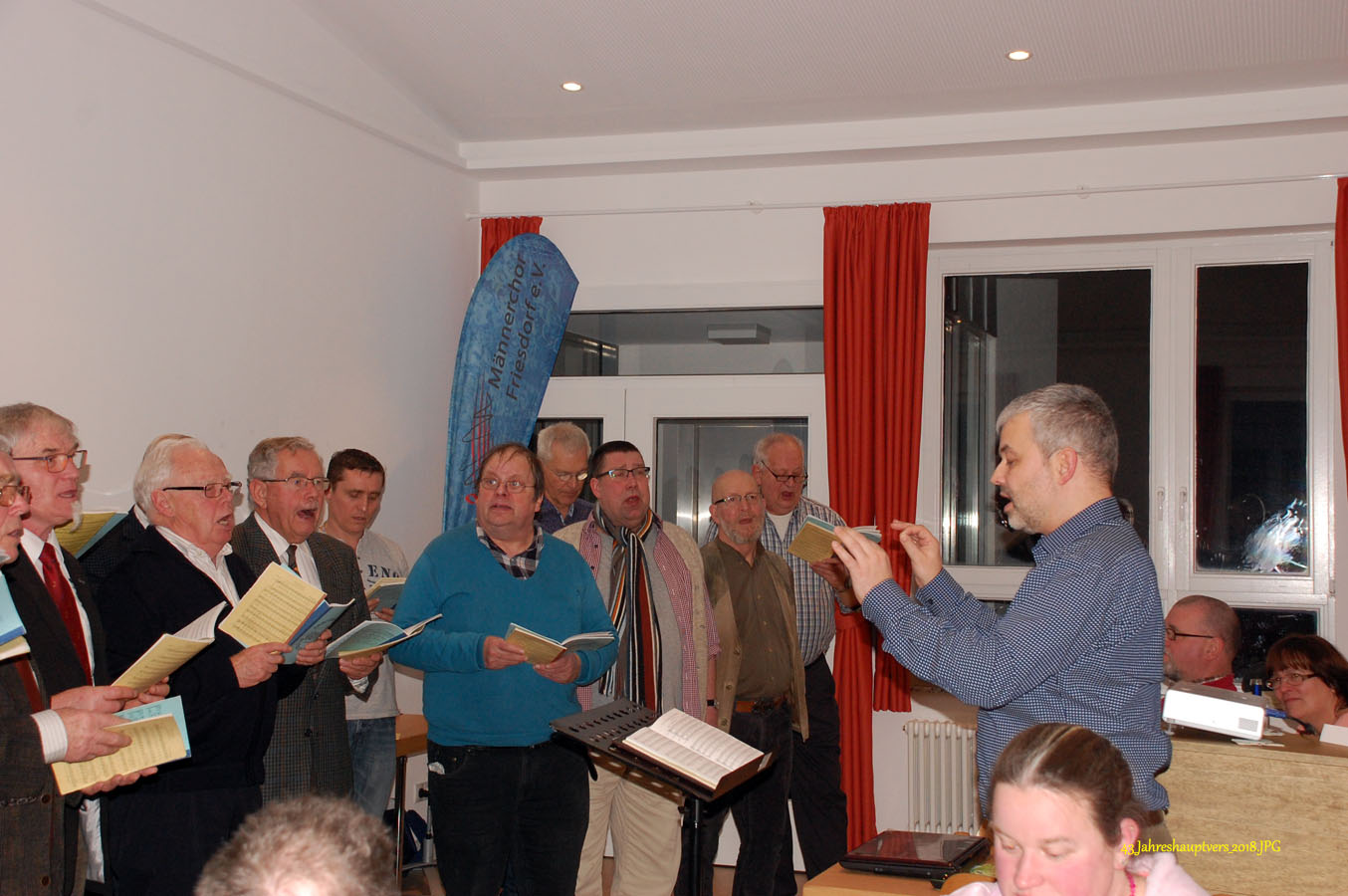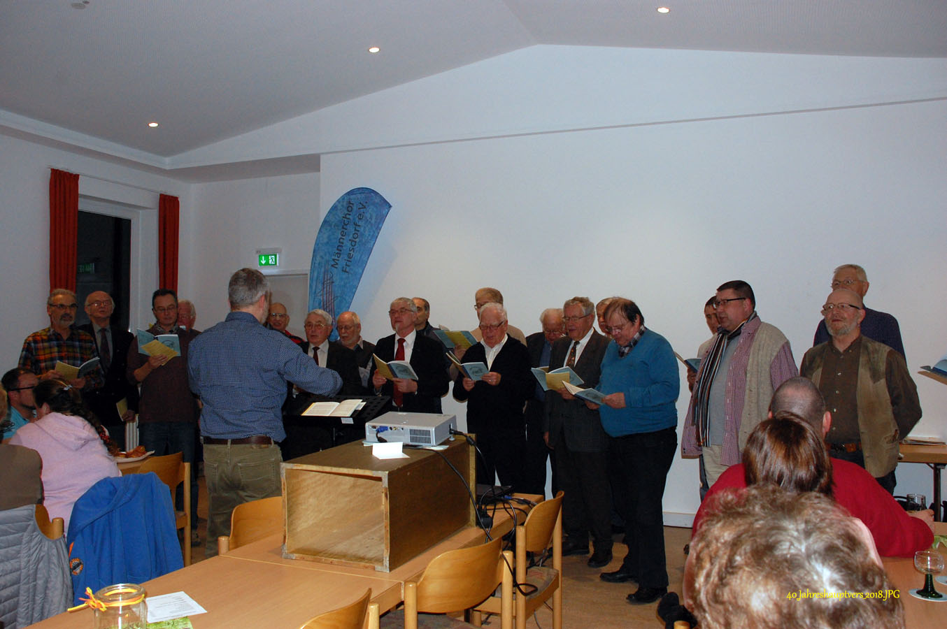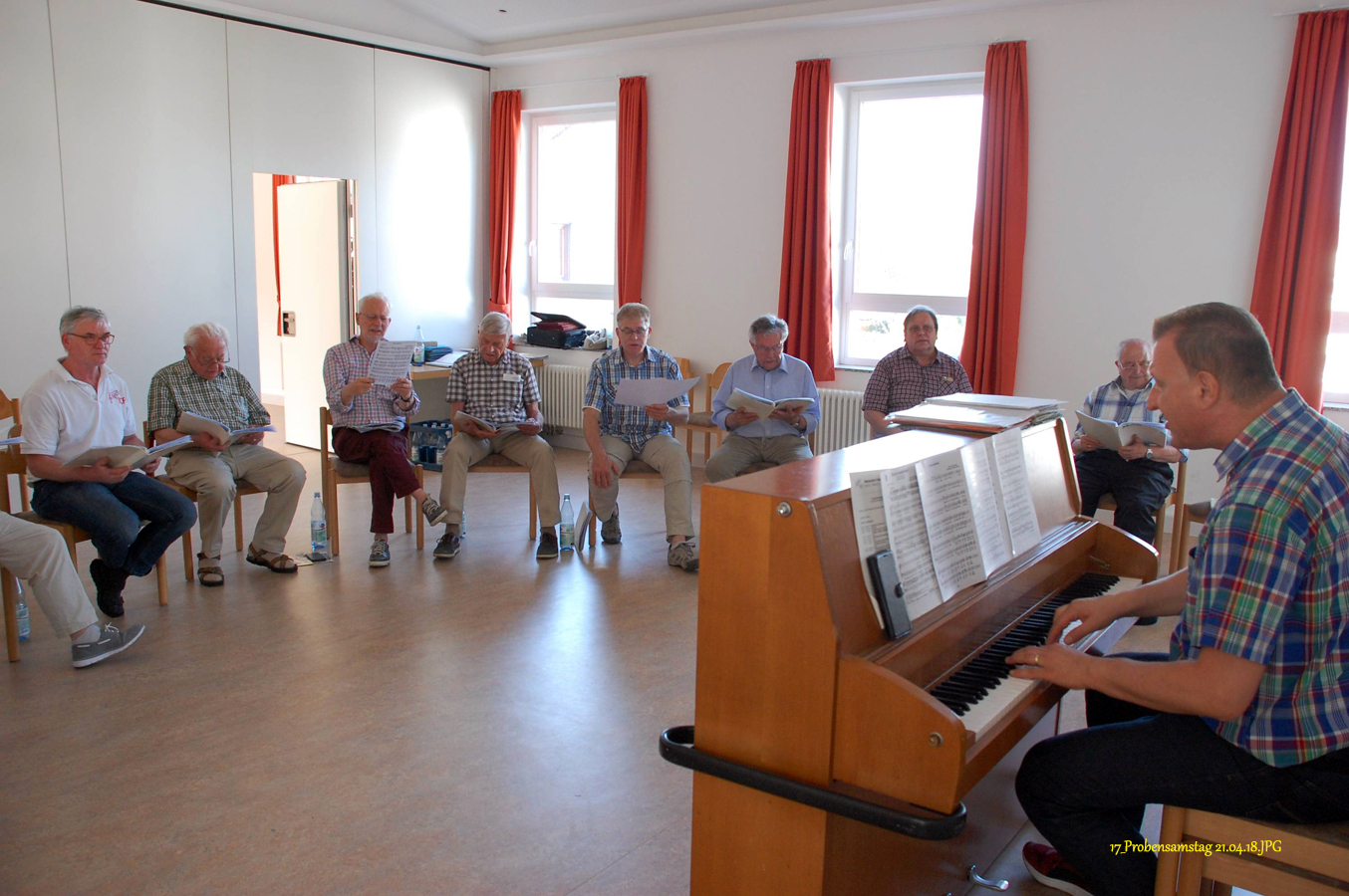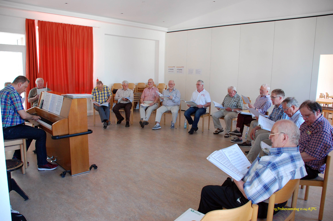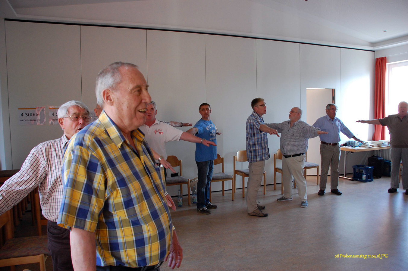 16 interessierte und engagierte Sänger des Männerchores Friesdorf hatten heute Gelegenheit, an einer vom Vorstand organisierten Stimmbildung im Pfarrzentrum in Friesdorf teilzunehmen.