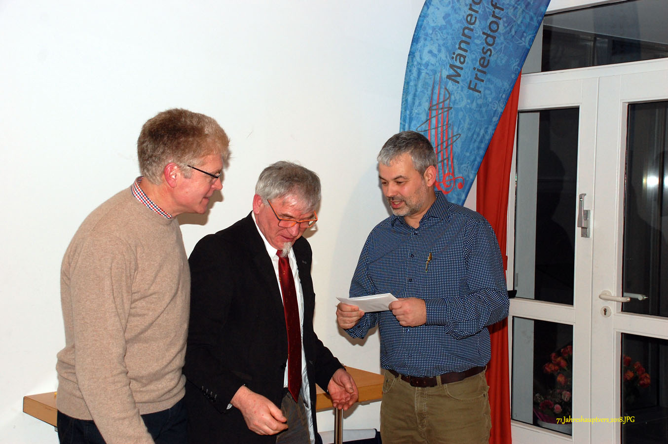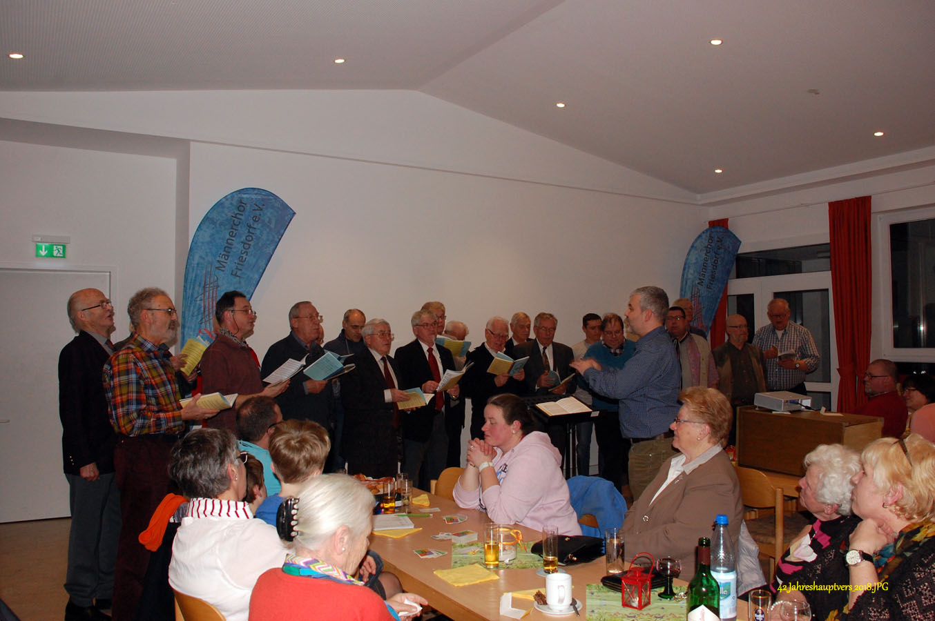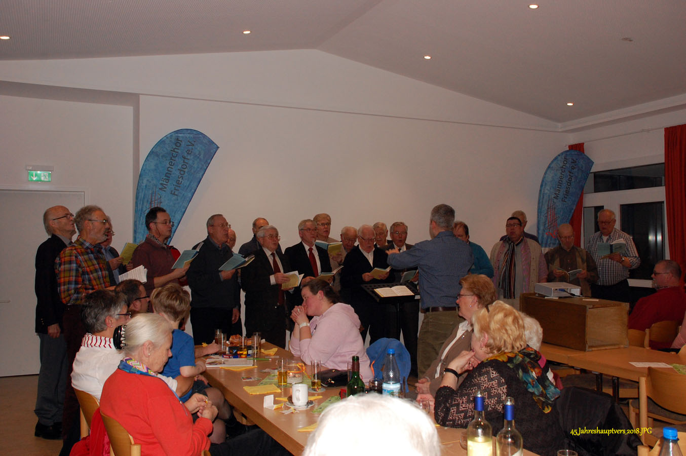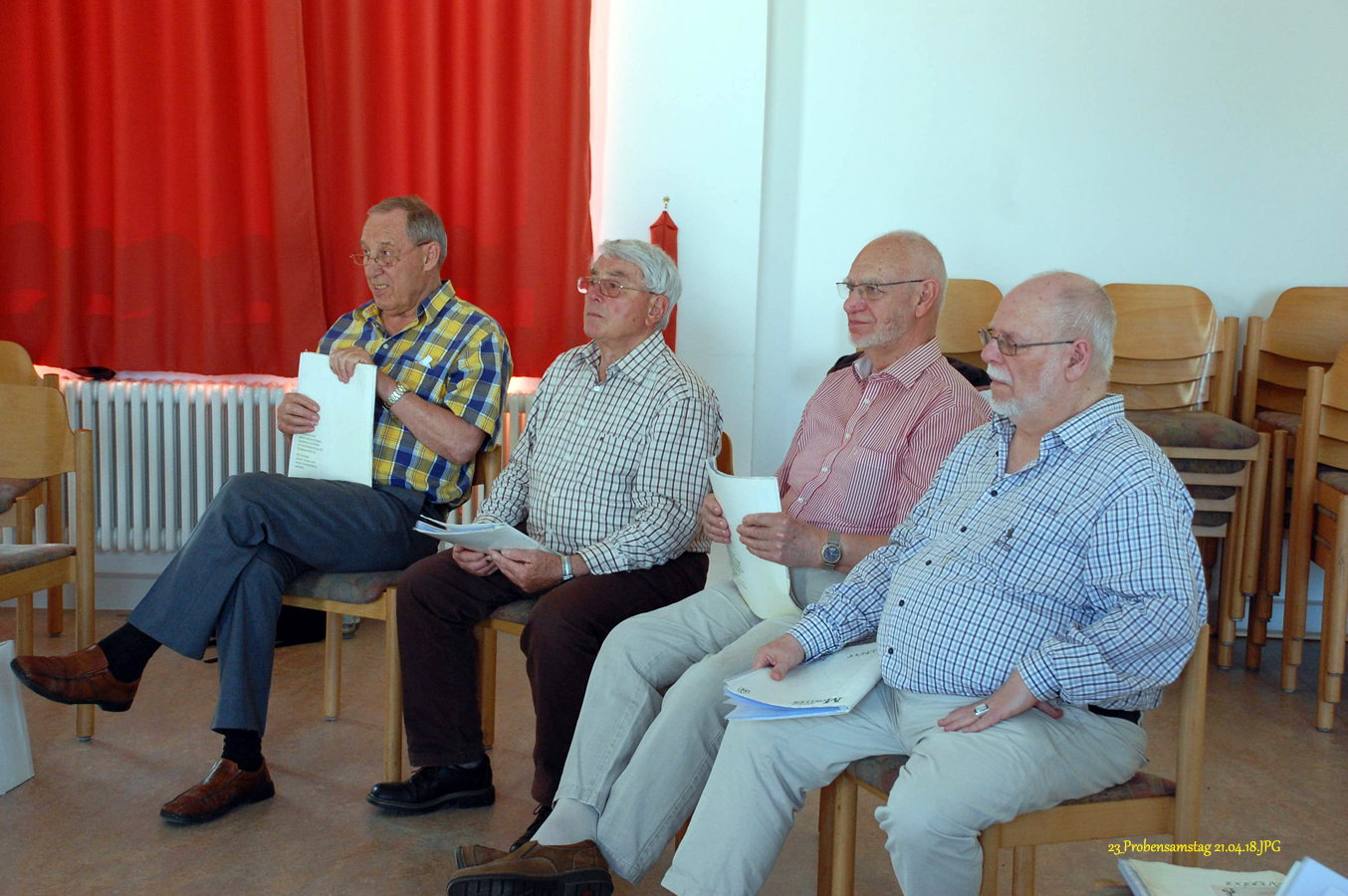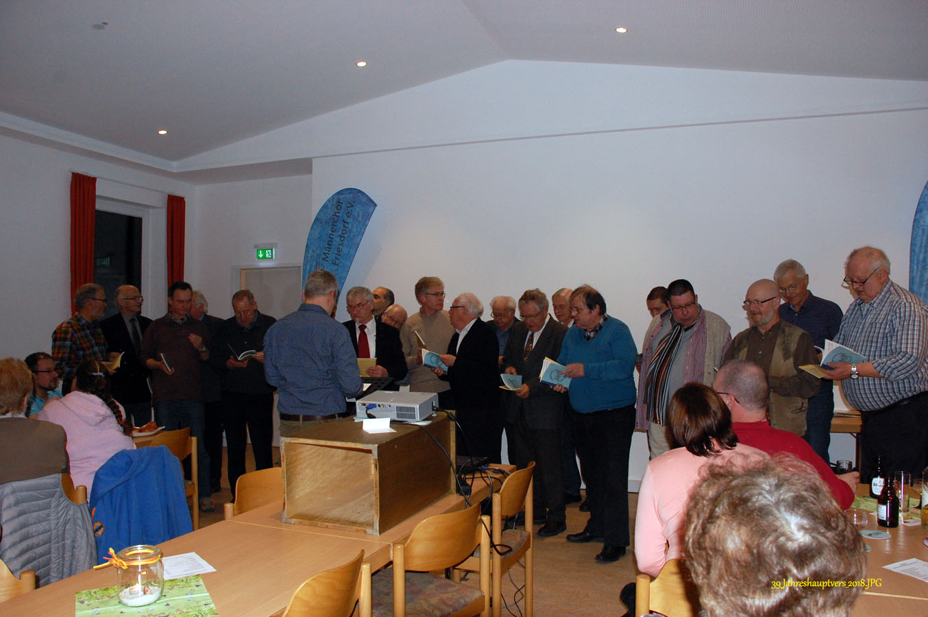 16 interessierte und engagierte Sänger des Männerchores Friesdorf hatten heute Gelegenheit, an einer vom Vorstand organisierten Stimmbildung im Pfarrzentrum in Friesdorf teilzunehmen.