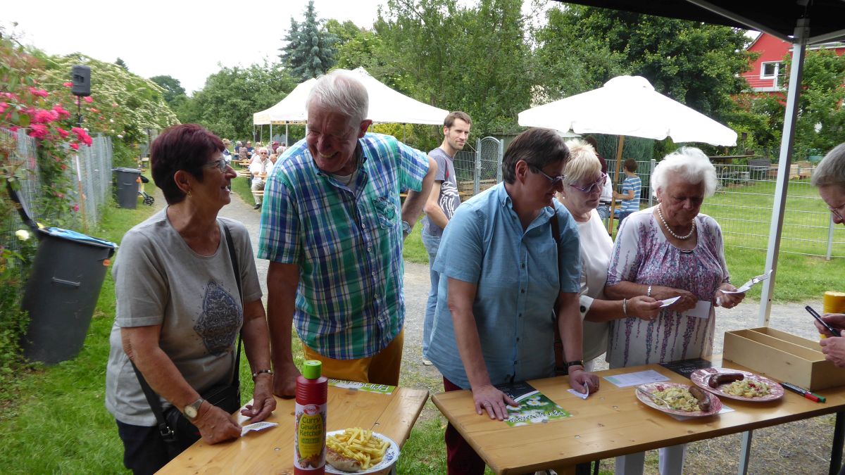 Zum Weinfest in den schönen Wiesengrund in Friesdorf hatte zum 31.08.2019 der Männerchor Friesdorf geladen. Gut vorbereitet von den Sängern, kamen bei Sonnenschein die ersten Gäste bereits gegen 15:30Uhr und erfreuten sich an Kaffee und selbstgebackenem Kuchen. Es war ein warmer Tag, sodass sich die Gäste lieber im Schatten der Apfelbäume aufhielten als im sonnendurchfluteten Zelt. Aber der Abend brachte kühlere Temperaturen und so schmeckten dann auch Zwiebelkuchen mit Federweißer, Würstchen und Steak bei leckerem Wein von der Ahr und Rheinhessen. Wer keinen Wein mochte, konnte bei alkoholfreien Getränken oder Stubbi die Geselligkeit pflegen. Der Männerchor Friesdorf freute sich an diesem Tag über die vielen Gäste, die bei bester Stimmung den Nachmittag und Abend auf der Festwiese verbrachten. Gegen 23:30Uhr konnte dann doch der Abbau von Gerätschaft und Zelten begonnen werden.