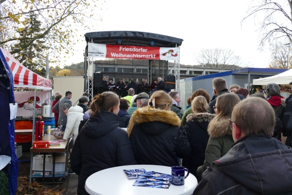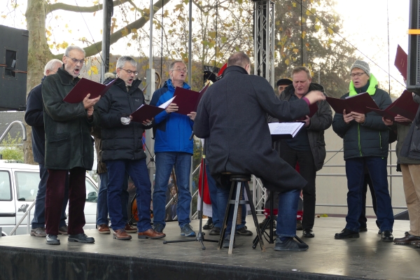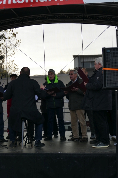 Wie in jedem der vergangenen Jahre, war am Samstag zur Eröffnung des Friesdorfer Weihnachtsmarkt der Männerchor Friesdorf zugegen. Mit einem 20minütigen Kurzprogramm entführten die Sänger die Aussteller und Besucher in die vorweihnachtliche Zeit. Zu den Sängern gesellte sich in Bischofsrobe der Nikolaus.
