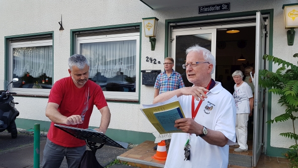 Die Lieder waren Klaus-Peter wohlbekannt, sodass er kräftig mitsang. Das für uns Friesdorfer Sänger besondere Lied „Heimat“ von Max Steege, brachte Emotional ein besonderes Feeling.