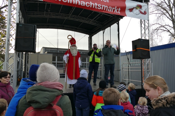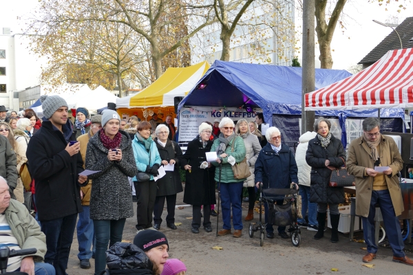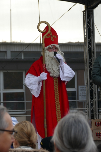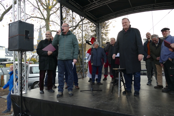 Wie in jedem der vergangenen Jahre, war am Samstag zur Eröffnung des Friesdorfer Weihnachtsmarkt der Männerchor Friesdorf zugegen. Mit einem 20minütigen Kurzprogramm entführten die Sänger die Aussteller und Besucher in die vorweihnachtliche Zeit. Zu den Sängern gesellte sich in Bischofsrobe der Nikolaus.