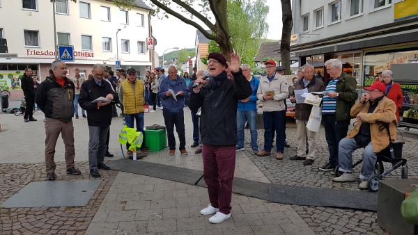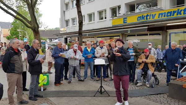 Der Ortsausschussvorsitzende Walter Omsels hatte uns eingeladen, den Mai nach der Pandemie mit der Ortsgemeinde musikalisch zu begrüßen. Gerne kamen wir der Einladung nach und sangen auch hier gut 30 Minuten Lieder zum Mai, von Rhein und Wein.