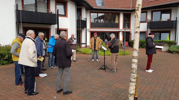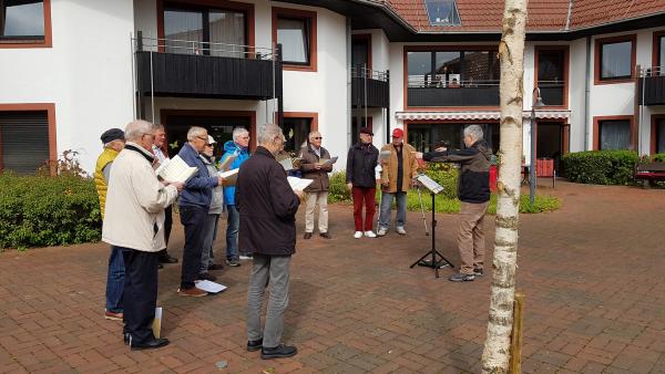 So lauschten die Bewohner durch geöffnete Fenster unserem Gesang. Zurück in den Innenhof gelangte zu uns Sängern der Applaus als besonderer Dank. Es hat uns und den Bewohnern viel Freude bereitet, sodass ein weiterer Auftritt in Zukunft von uns erwartet wird.